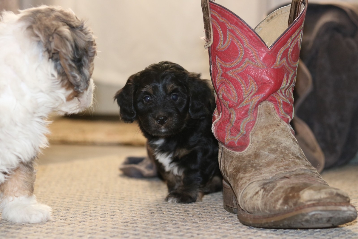 Chester is a F1B Micro Mini Bernedoodle male that is expected to mature to approximately 20-30 lbs and have a very heavy, wavy black-tri colored coat. Chester is weighing in at 4.1 pounds at 6 weeks old and has a medium temperament based off of his other 7 siblings. If you would like to reserve Chester, this can be done by making the NONREFUNDABLE deposit which is a commitment for us to hold him until he is ready to go home by January 3rd or soon after.