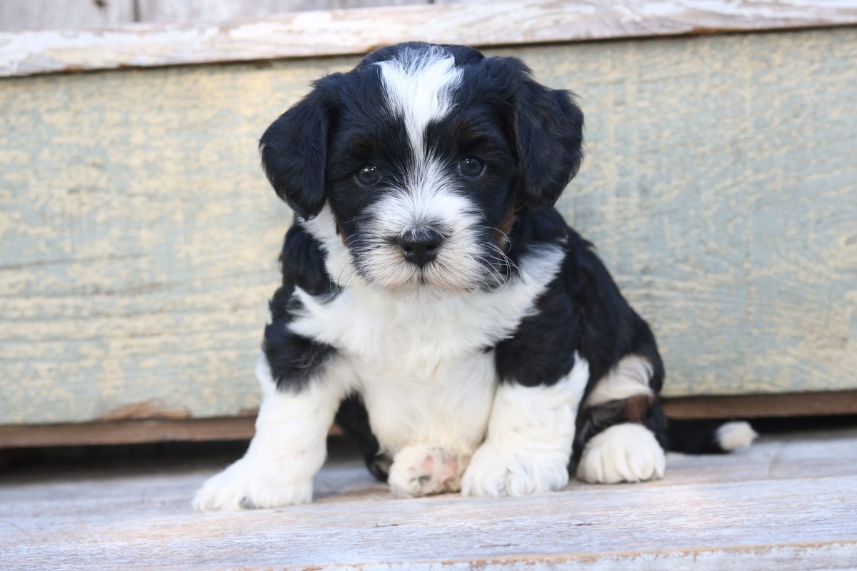 Jett is a F1B Tiny Bernedoodle male that has a black tri heavy-wavy coat with tri markings, and is estimated to mature around 15 to 30 pounds. Jett is weighing in at 3.9 pounds as of 6/26/22 and is rated as having a medium temperament.