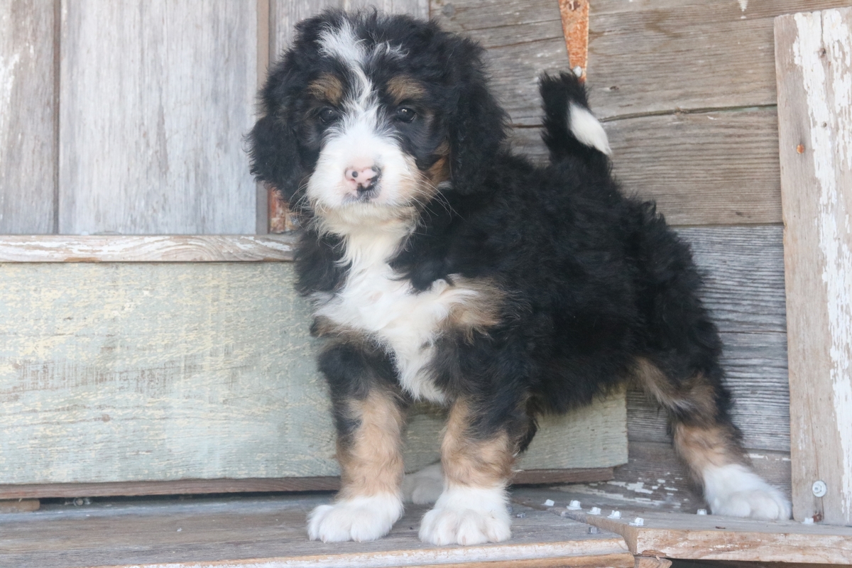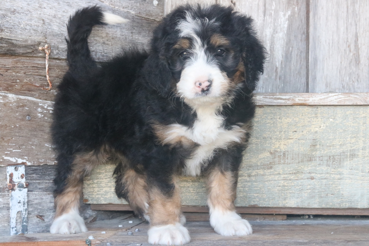 Jette was born on September the 3rd to Phoebe and Teddy, she is a black tri colored female with Traditional Tri colored markings and is expected to mature at approximately 60-85 pounds and have a heavy wavy coat. Jette is rated as having a medium disposition based off her and her sister, she weighs 10.14 pounds as of October the 22nd.