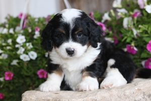 Mini Bernedoodle puppies born on May 18th, 2019 are 9 males and 4 females to Cami and Zues. These Bernedoodle puppies are a F1 Mini Bernedoodle, Black Tri and Merle Tri with traditional tri color markings as well as some with blue eyes. These First Generation Bernedoodles are expected to mature to 25-55 pounds and parents are genetically tested to ensure maximum potential of having Wavey , minimal shedding coats.