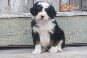 Born April 21st, 2023 are 6 Black Tri males and 4 Black Tri females to Chanae and Jupiter. These F1 Mini Bernedoodles are expected to mature to approximately 25-50 pounds and both Chanae and Jupiter are both genetically tested to ensure maximum potential of having wavey minimal shedding coats.