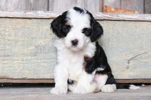 These F1B Micro Mini Bernedoodle puppies born on November the 17th are 4 boys and 4 girls. In this Hartley and Layne litter there are Merle and Black Tri colored puppies with tri markings. These tiny Bernedoodles are expected to mature at approxamintly 15-30 pounds and both Hartley and Layne are both genetically tested to ensure health and proper conformations.