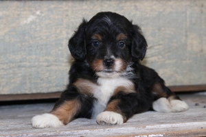 Please click on the link if you would like more information on this F1B tiny Bernedoodle male.