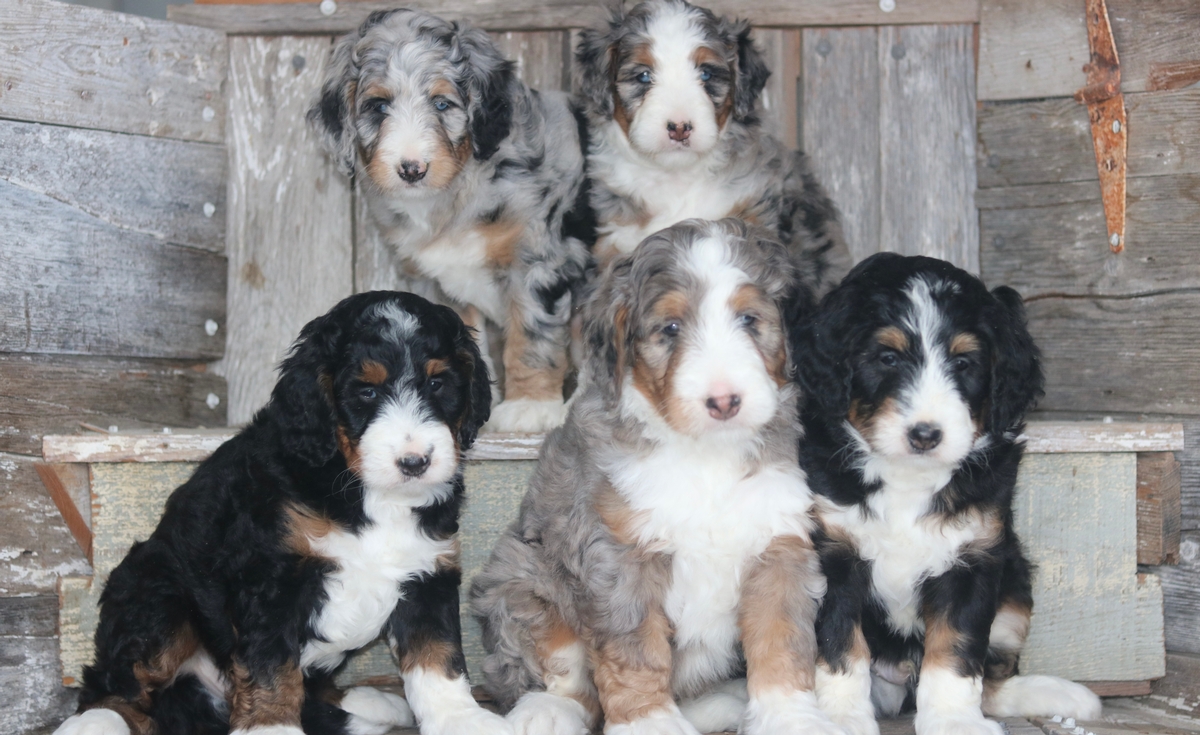 These Standard Bernedoodle puppies can go home February the 13th (at the earliest) or soon after.